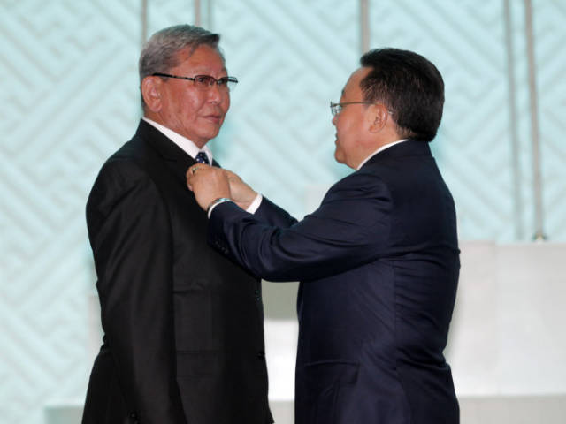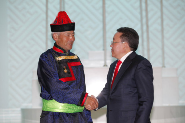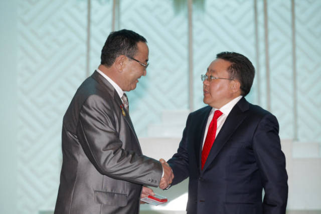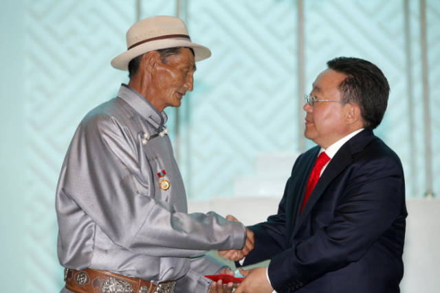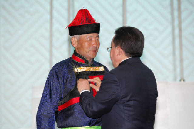 蒙古国国庆那达慕之即,发布总统令,向教育、文化、艺术、体育、农业、科技、航空、铁路等行业的英模们授予了劳动英雄荣誉称号,并授勋。