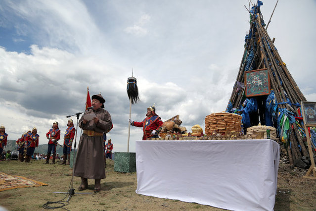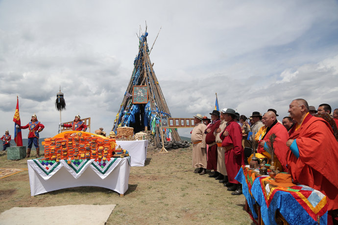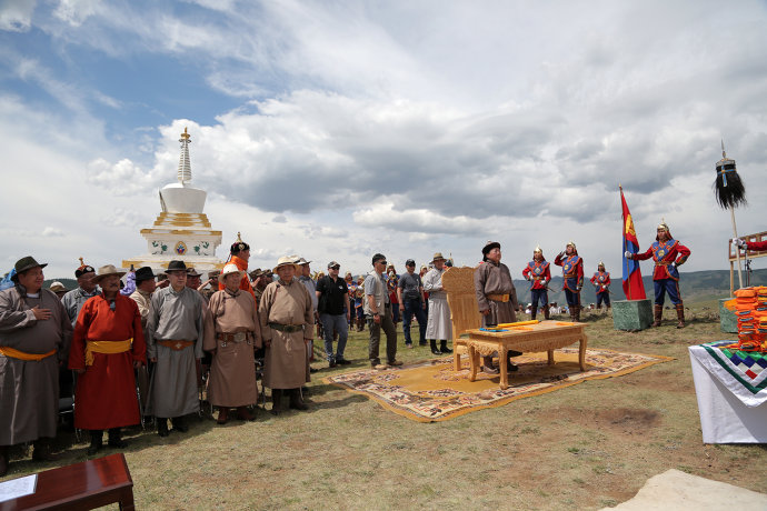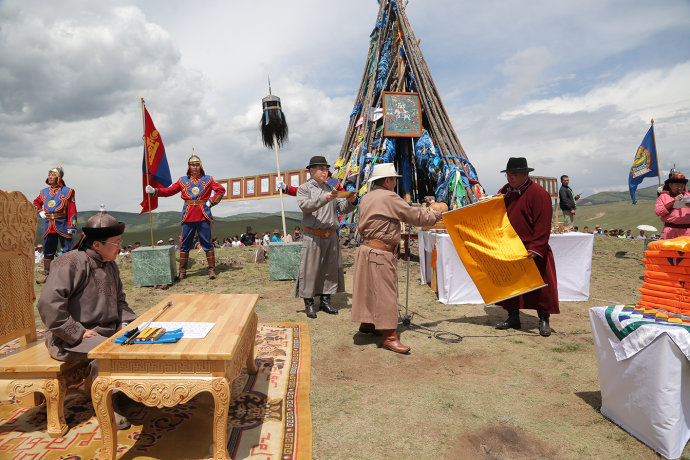6月13日,蒙古国总统带领政府官员在后杭爱省承和尔县举行了隆重的苏布日嘎峰国家祭天仪式。