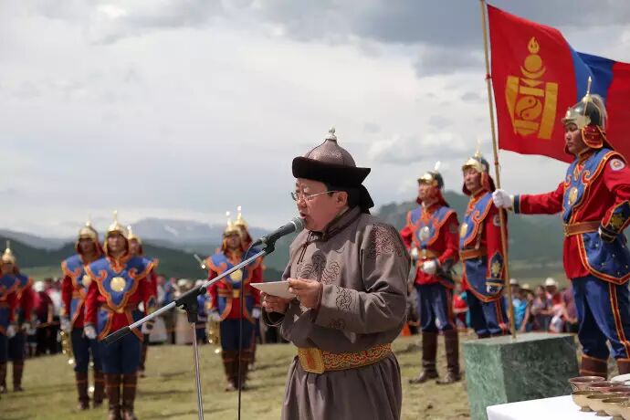 国家总统查希亚.额勒贝格道尔吉也做了热情洋溢的的演讲,他说:“后杭爱省人通过辛勤的劳动和不谢的努力,全省牲畜总头数达到了380万头(只),成为全国牲畜最多的省份,你们为国家经济社会发展做出了卓越的贡献。牲畜的增长是牧人的喜悦和福祉。这里有主人的劳作和努力外,还有苍天赐于蒙古人的大恩。风调雨顺,牛肥马壮,草原人民老少无疾,远离灾祸,国家政通人和,百业兴旺,这便是游牧民众——我们蒙古人的幸福。我衷心地祈求上苍的骄子——苏布日嘎峰,赐福于世代生息在杭爱山南北麓的民众,赐福于世代生息在草原的全体蒙古人,让他们为家乡、为祖国的繁荣昌盛做出更大的贡献。”