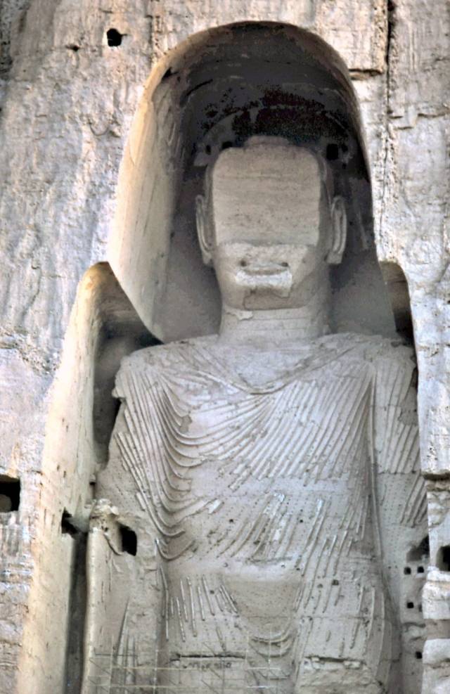 在塔利班以前,两尊大佛面部已被铲平,其中一座大佛双腿也被毁坏。